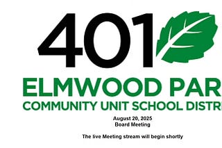 The following school board meeting video was initially broadcast by Elmwood Park Community Unit School District 401 on August 20, 2025.