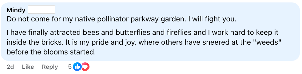 We wouldn’t dare come for your native garden! Please let us know if code enforcement ever says you cannot have your “pride and joy.”