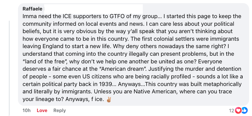 By and large, most readers were in favor of Sara’s message, which was a call for empathy and a plea for neighbors to recognize that we cannot just put our heads down and pray that ICE will not come for any of us.