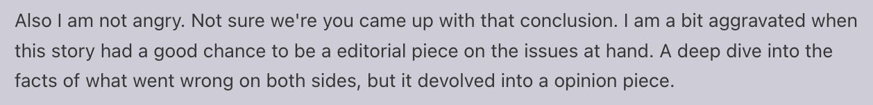 Don had a lot to say about the way in which Sara wrote about the incident. In fact, he asked about submitting an article to the newsletter. We are open to publishing letters addressed to the publication.