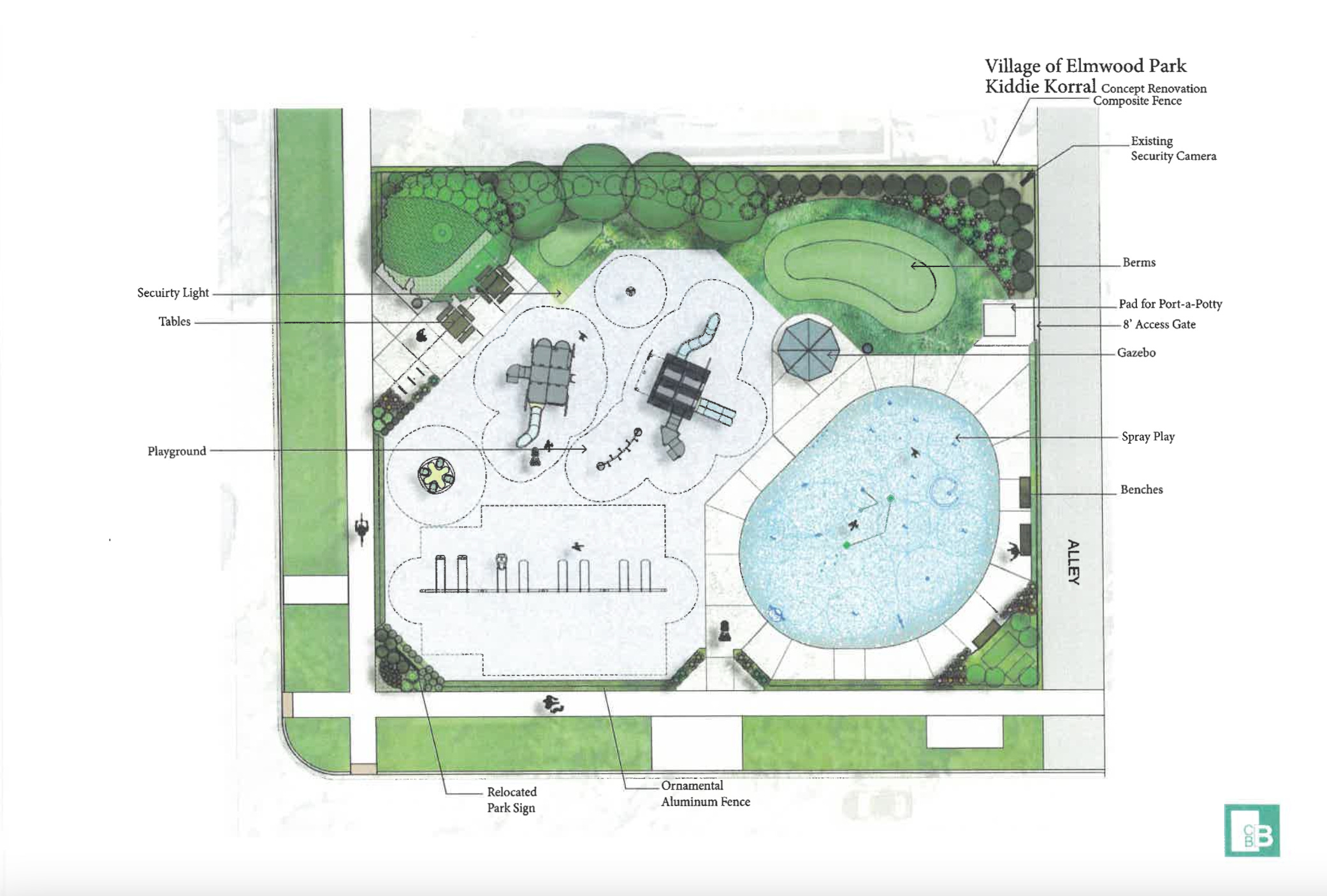 The Elmwood Park Advocate obtained the village's grant application for the new Kiddie Korral Park, which contains concept designs